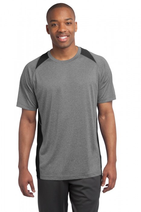 This great looking sport T-Shirt features heather jersey fabric with color-block panels on the shoulders and sides. It is moisture-wicking with exceptional breathability and snag resistant at a great value.