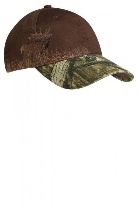 This great looking outdoor hat features Pigment-dyed front panels, visor and closure for an oiled leather look. The side and back panels have a popular camouflage pattern to complement the front panel.